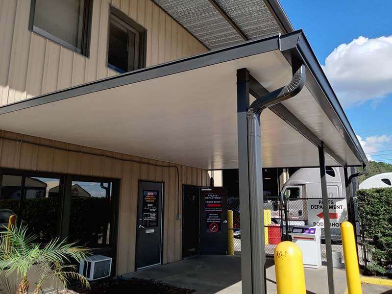 Dulando Screen and Awning’s commercial patio covers are the best in the industry. They are built with modern technology and superior materials giving our commercial patio covers an aesthetically pleasing look that will stand up to Florida’s unpredictable weather. You can count on these commercial patio covers to be virtually maintenance-free for many years. Commercial aluminum patio covers are less expensive then wood patio covers, but they can match the aesthetic of the property from which they will be built. They can also be built to resemble a wood look.