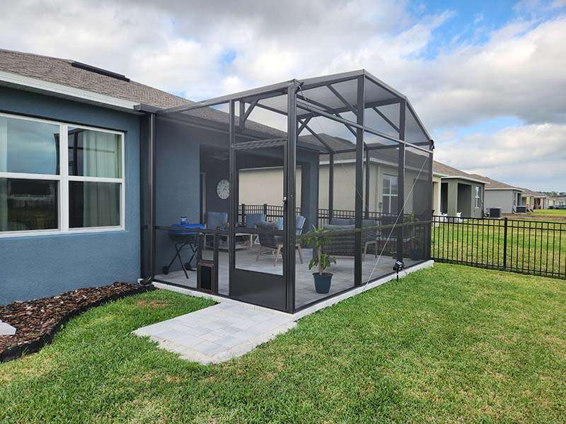 We also offer aluminum screen enclosure structures which never rust or corrode, with fiberglass vinyl coated screen: it’s almost maintenance free.