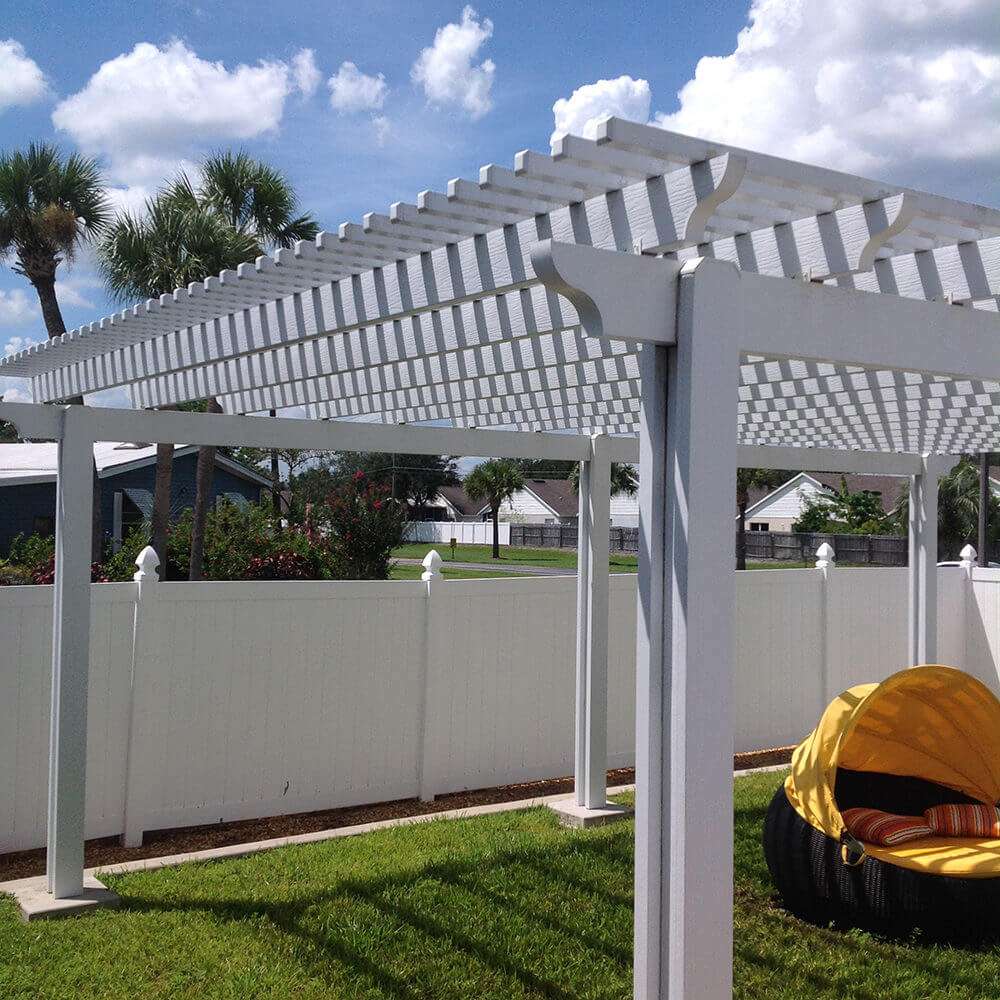 Imagine a decorative pergola or trellis that enhances your home and provides a comfortable, shaded sitting area for outdoor entertaining.