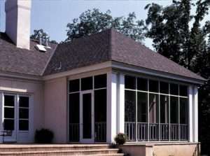 Because of their slopes, hip enclosure roofs provide more wind resistance during storms. They also provide the illusion of being taller than a mansard roof.